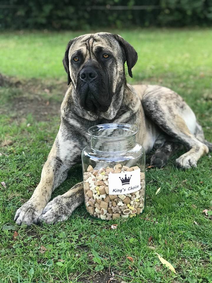 Uit dat nestje kwam King: een kruising tussen een Boerboel en een Bullmastiff. Hij werd onze inspiratie voor de naam King’s Choice.
